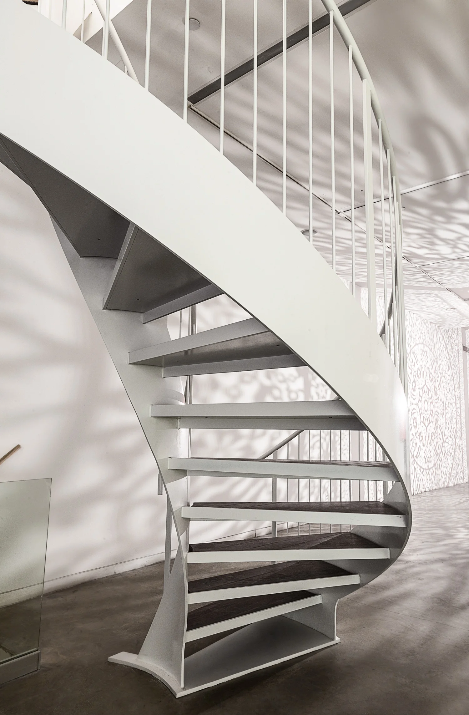 The featured project for November is this white painted custom helix staircase that we fabricated and installed for an art gallery in Noho.